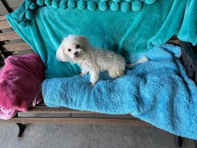 Gorgeous Teacup Malti-Poo male puppy. Three pounds almost fully grown Pure white with light cream...
