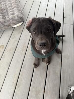 Stone is an improvement bred charcoal female 1/2 American 1/2 English. She prefers women over men a...