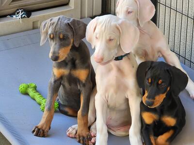 I have 6 beautiful purebred Dobies. Black/Rust female. Fawn male. Blue females. Red male. Whit...
