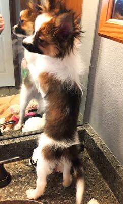 Velvet has soft fur like velvet and will be an average sized female about 7 1/2 lbs. papillon and i...