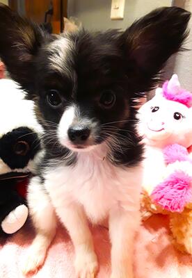 Mostly black female Papillon with Velvet-like fur and white accents FREE Delivery
