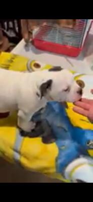 Female micro American bully White with some black spots All Shots up to date Has papers 6 mon...