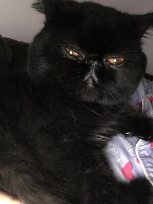 He is a red and white exotic short hair comes with vaccines rabies shots looking for us forever home...