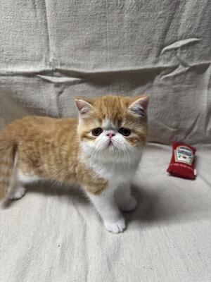 He is a red and white exotic short hair comes with vaccines rabies shots looking for us forever home...