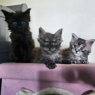 Black smoke/Grey smoke maine coon babies for sale! Born May 3, 2025. 2 males, 1 female. Very sweet, ...