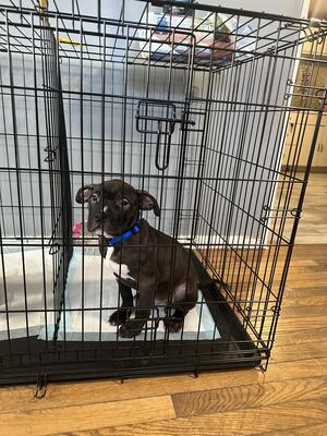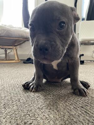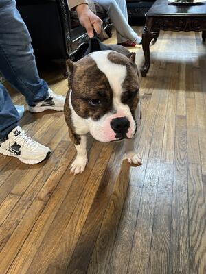 Puppy is a girl, she is 3 months old Dad is the grey bully Mom is the black and white frenchie ...