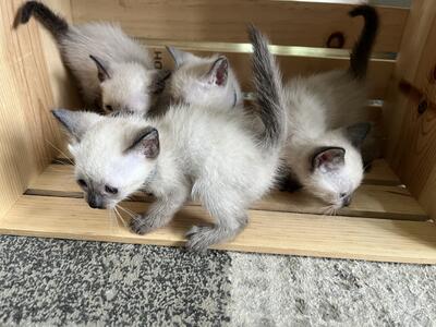 Trixie our seal point Siamese Mom had a litter of 4 Siamese kittens born 5/8. Mom is seal point and ...