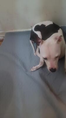 32 lbs Black and White Female American Pitbull Terrier that is of unknown age and history. We''ve ha...