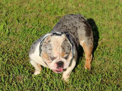Now Available – Exceptional Merle Male This striking boy is one of our most outstanding bad apple...