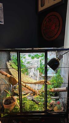 Young Green Iguana and enclosure for rehoming. Approximately 6 +months old. Does ok being held, does...