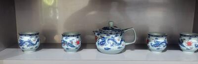 This is a Beautiful 5 Piece Oriental Tea Pot Set. This Set Includes Tea Pot with Lid and (4)Tea Cups...