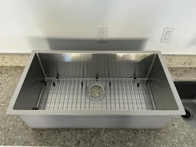 New stainless steel kitchen sink for sale. It's a 32" x 18", 18-gauge sink that includes the bottom ...