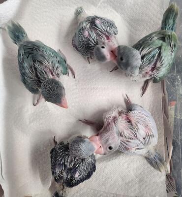 Cinnamon 150 Yellow sides 150 Green check 150 Pineapple 150 hand fed, fully weaned ready for ...