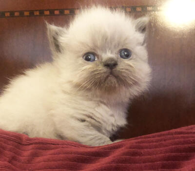 This Persian kitten is a seal point blue girl with vivid, deep blue eyes. This blue point Persian is...