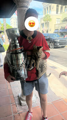 We have a beautiful 6 month Black Nose Savannah F1 Male available. He gets along very well with cats...