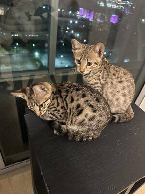 F2 Savannahs. One boy one girl date of birth, 3/12/2025. They are Tica registered. Their brother at ...