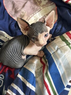 Beautiful, healthy odd eye sphynx kitten! Born 8/22/2025. Mom is a lavender sphynx and dad is a cre...