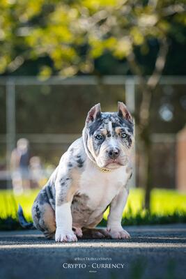 ABKC American Bully Pocket Stud Only Crypto Currency BlueTriMerle Dad 2FACEBROLY Mom Queen M...