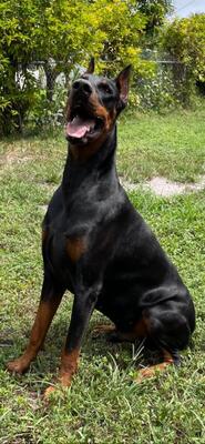 4 year old male Doberman. Great temperament. Will breed with any female dog....