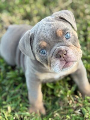 Cute, friendly and full of love to give! English Bulldog Male 8 weeks. Color: Exotic Lilac Tan and b...