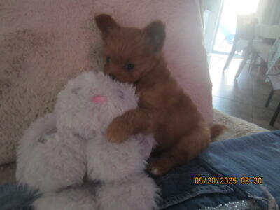 Lucy was born in October. She is UTD on shots and dewormings. She is 5 lb. Parents are 4 lb and 5 lb...