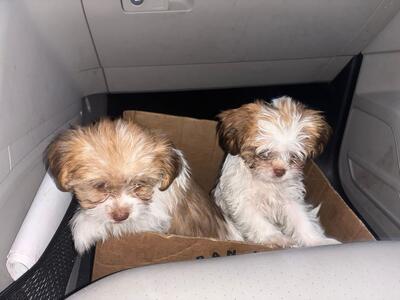 The dad is a black and white Maltese and Chihuahua mix The mom is a white and apricot Shihtzu and M...