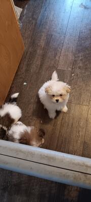 1 white and cream female shipom. Sweet and friendly. Loves everyone and is full of puppy love for a...