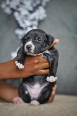 Available after May 17th @ 8 weeks old. Puppy shots and and veterinarian supplied health certificate...
