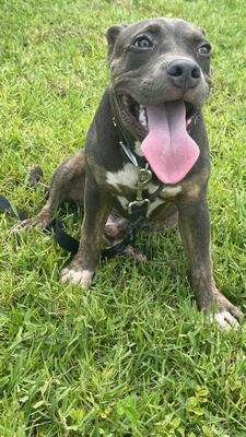 7 month old blue tri boy looking for a new home!! Crate trained, dog with other animals and kids!!...