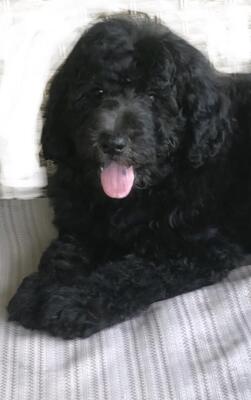 Hi her name is Mocha she is trained and over all a great dog she has all of her shots. Unfortunately...