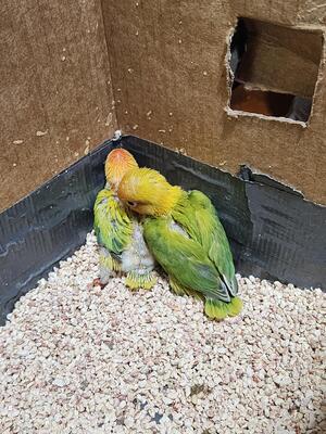 Green ewing and pied opaline lovebirds looking for a new aviary, close banded, usa shipped not inclu...