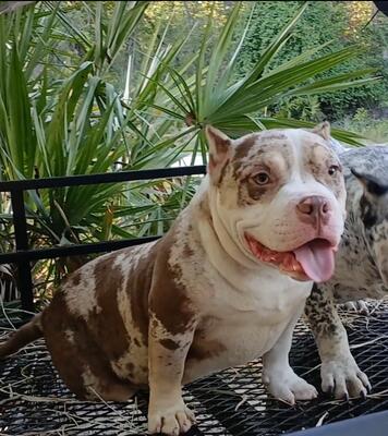 Beautiful Brindle Merle Pocket Female ABKC papers and Florida State Health Certificates in hand. ...