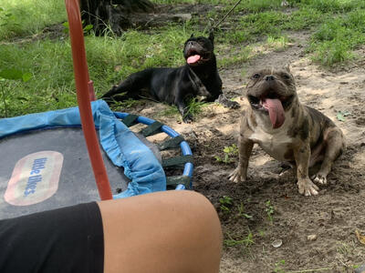 Male is Merle and the female is brindle akc papers in hand full registration female has only one lit...