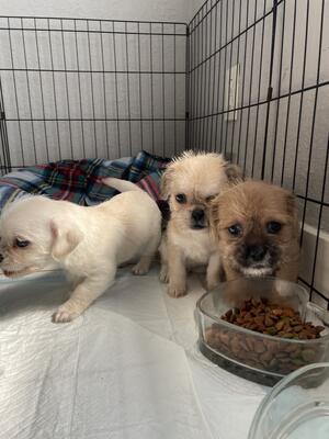 1 male micro chocolate tri Current on vaccines all three puppy shots done and rabies . Ears have b...