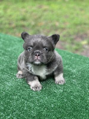 Parker is our picture perfect Lilac Fawn Male Frenchie puppy. He is the funniest little spunky munch...