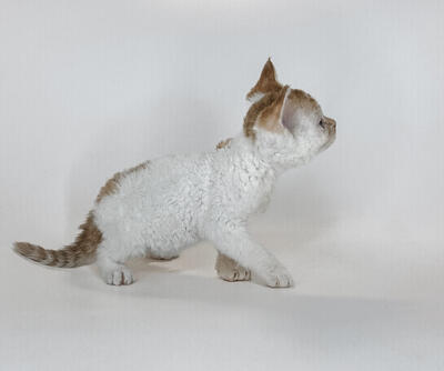 Devon Rex Kitten Color: Red Harlequin with Green Eyes (d 02 64) Gender: Male Date of Birth: 05/18...