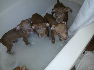 I have five full blooded pitbull puppies currently five weeks old been dewormed. First parvo shot wi...