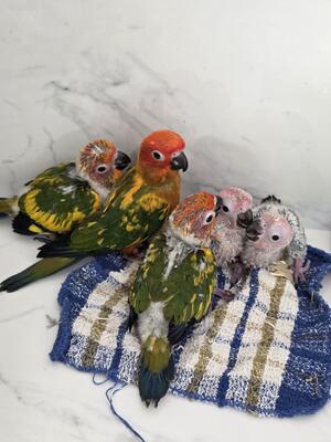 red factor sun conure babies $450 each and regular sun conure babies 300 each text 786-312-5534...