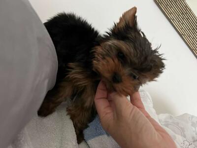 Beautiful Female Yorkie with her vaccines up to date and microchip. 786-591-9853...