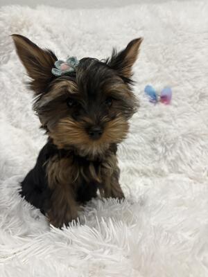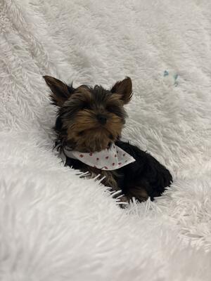 Beautiful Female Yorkie with her Vaccines up to date and microchip. 786-591-9853...