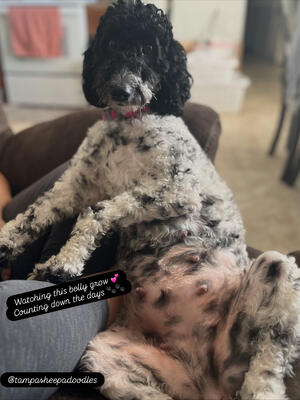 Our sweet mama to be is getting ready to welcome her adorable litter of mini sheepadoodles! 💕 The...