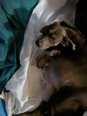 3 year old adult Silver Lab female to pet home only. She does well running with my other bullies. I ...