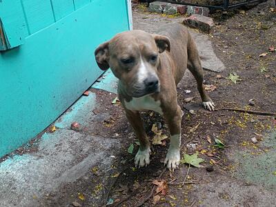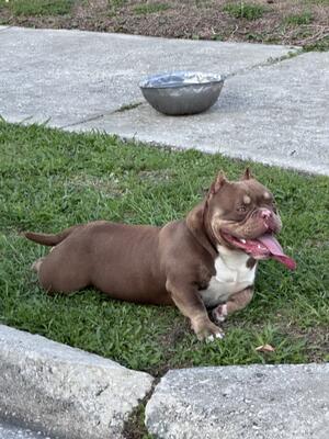 Charley is a 3 year old male American Bully. Chocolate Tri in color, 27in head, at least that tall a...