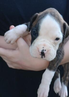 I have 2 brindle males and 2 females available. I own mom and dad. They are seven weeks old. They wi...