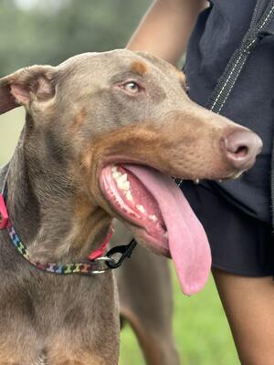 Re-homing 2 Year Old Intact Fawn Doberman Male. Docked/Cropped. Crate Trained. Good with kids and do...