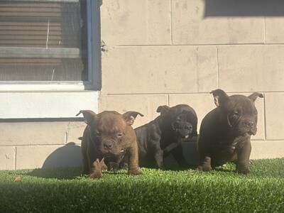 4 yr old female bully. Friendly with kids and other dogs Pet home...