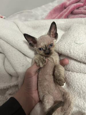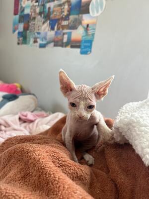 I have one kitten female parents on sight she does have a little hair but she is still pure hairless...