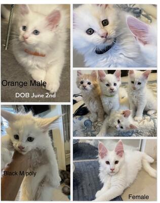 Rehoming 3 female Maine Coons All white polydactyl DOB.March 7,2023. $900 Cream calico polydacty...