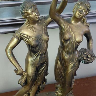 The Sisters with Flowers Sculpture is an elegant yet powerful work of art that captures the essence ...