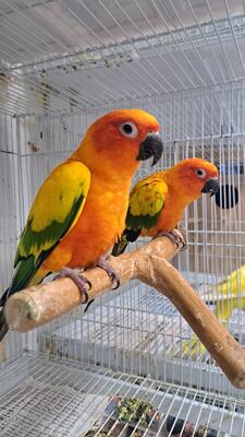 Green cheeks $150 and sun conure $350 for hand feed ready to go please text me to my cell phone num...